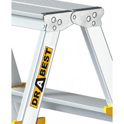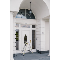 A high-quality double-sided aluminum ladder with foldable legs is a product designed for work at lower heights. It features exceptional stability and durability, with a load capacity of up to 150 kilograms. It is perfect for everyday office and household tasks, or as support for work in a shop.