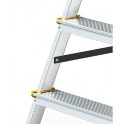 The main structural element of the ladder are solid side rails made of high-quality aluminum with profile dimensions of 40x20 mm. Aluminum is a material known for its exceptional strength and resistance to deformation, which guarantees that the ladder remains stable and safe even during intensive use. Thanks to these parameters, the structure is able to meet the requirements of both professionals and home users, ensuring confidence and comfort of working at heights for many years.