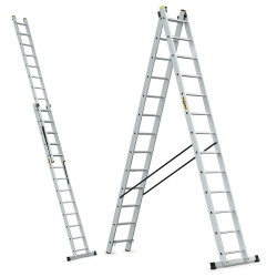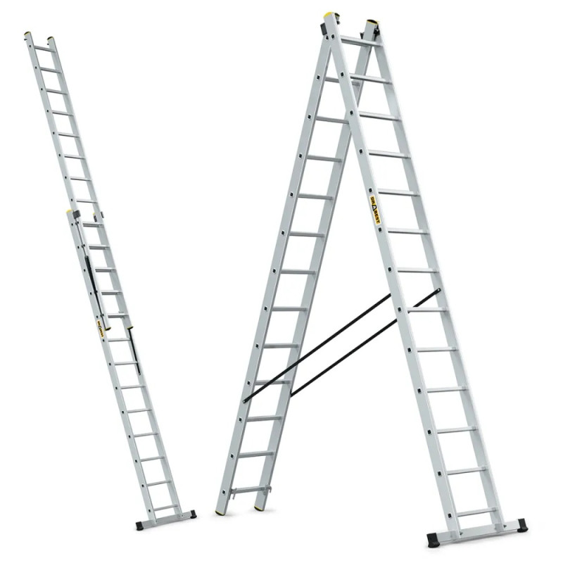 The two-section ladder offers a range of features that facilitate work in industrial environments and on construction sites. Its versatility and sturdy construction make it ideal for commercial applications such as maintenance, installation, and construction work, providing safety and convenience for various specialized tasks.